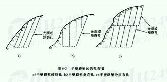 (1)光面爆破:在开挖限界的周边,适当排列一定间隔的炮孔,在有侧向临空面的情况下,用控制抵抗线和药量的方法进行爆破,使之形成一个光滑平整的边坡。