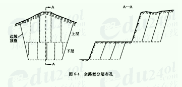 1)特点:炮孔需用大型的潜孔凿岩机或穿孔机钻孔,是大量石方(万方以上)快速施工的发展方向之一。