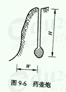 (3)药壶炮是指在深2.5~3.0m以上的炮眼底部用小量炸药经一次或多次烘膛,使眼底成葫芦形,将炸药集中装入药壶中进行爆破。