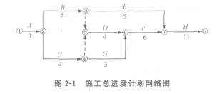 (1)根据材料中提供的双代号网络计划来计算其各工作的时间参数,确定关键线路,通过压缩关键工作的持续时间来优化网络计划。