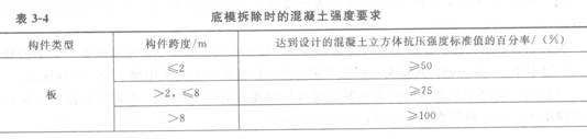 (2)底模拆除时的混凝土强度要求(见表3—4)。
