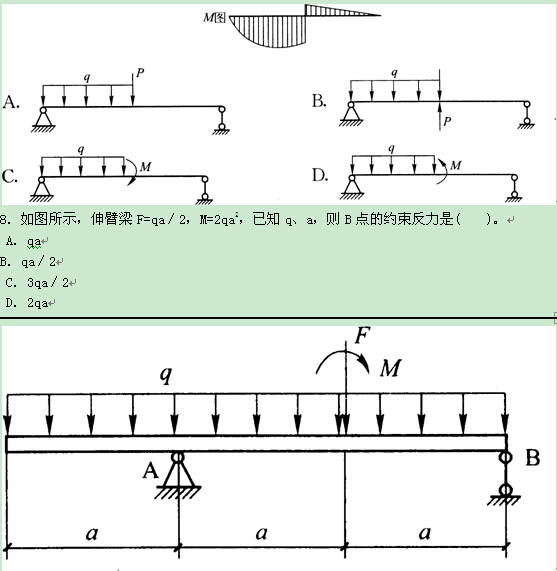 7.如图所示,与图示的弯矩图一致的简支梁是( )。