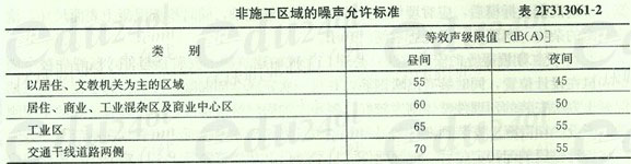 2 .施工作业噪声传至有关区域的允许标准见表 2F313061 一 2。