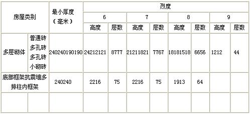 历次震害证明,砌体房屋的层数越多,高度越高,它的地震破坏程度越大,所以控制砖砌体房屋的总高度及总层数对减少地震时带来的震害有很大的作用。现行建筑抗震设计规范(GB50011—2001)对多层砌体房屋的总高度和总层数有了强制性规定:多层砌体房屋的总高度及层数应满足表1中的限值。