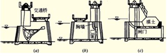 (a)开敞式;(b)胸墙式;(c)涵洞式