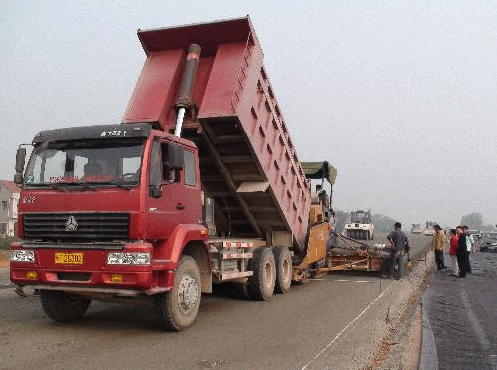 2.为防止沥青混合料粘结运料车车厢板,装料前应喷洒一薄层隔离剂或防黏结剂。