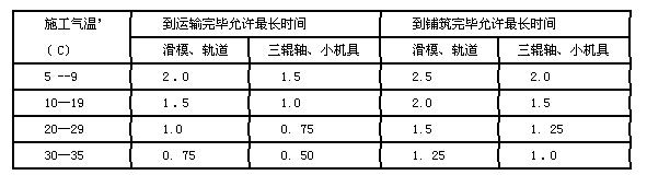 注:表中*指施工时间的日间平均气温,使用缓凝剂延长凝结时间后,本表数值可增加0. 25~0. 5h。