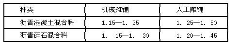 沥青混合料的松铺系数 表1K411041-1