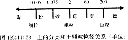 1)土颗粒组成及其特征;土的分类和土颗粒粒径关系如图1K411023所示。