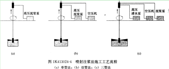 3)三管法:喷射高压水流、压缩空气及水泥浆液等三种介质。