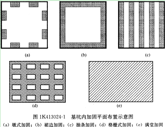 (1)基坑地基按加固部位不同,分为基坑内加固和基坑外两种。