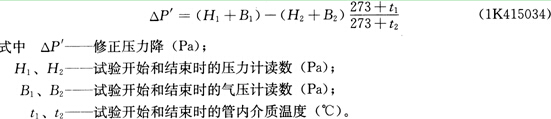 (3)稳压的持续时间应为24h,每小时记录不应少于1次,修正压力降不超过133Pa为合格。修正压力降应按下式确定: