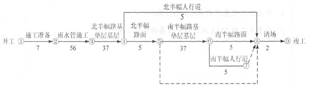 图中,雨水管施工时间中已包含连接管和雨水口的施工时间;路基、垫层、基层施工时间中己包含旧路翻挖、砌筑路缘石的施工时间。