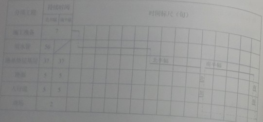 3、可用流水作业,压缩工期是关键工作的南北幅的路基路面,可以同时施工,交叉作业。(6分)