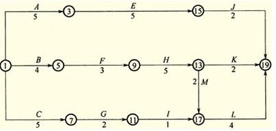 由于该工程施工工艺的要求。计划中工作C、工作H和工作J需共用一台起重施工机械,为此需要对初始网络计划做调整。