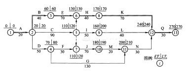 关键线路是①②③⑥⑧⑫⑬;计划工期