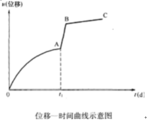 该隧道采用新奥法施工,施工单位要求开挖时尽量减少对围岩的扰动,开挖后及时施作初期喷锚支护,严格按规范要求进行量测,并适时对围岩施作封闭支护。下图为施工监控量测得出的位移-时问曲线示意图。当位移-时间曲线趋于平缓时,应进行数据处理或回归分析,以推算最终位移和掌握位移变化规律。