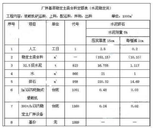 厂拌基层稳定土混合料的定额如下表标示:各定额分项预算价格分别为:人工:80 元/工日;稳定