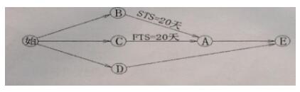 根据施工组织安排,排水工程(B)开始施工20天后才能开始路基土石方工程(A)施工,涵洞(C)完成后20天后才能开始路基土石方工程(A)施工,而砌筑防护工程(D)与涵洞(C)、排水工程(B)同时开始施工,在路基工程全部完成后才能进行路面工程(E)施工。