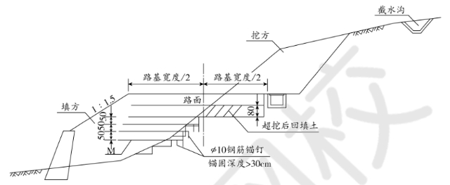(3)挖方部分按要求对路面下80cm范围的原状土进行超挖回填处理,确保压实度达95%,以减少路基差异变形。