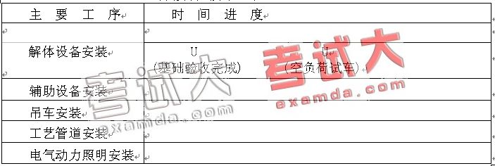 (1)A单位该如何策划工程的进度安装。画出以解体设备安装为主线的各主要工序(解体设备安装、辅助设备安装、吊车安装、工艺管道安装和电气动力、照明安装)进度计划横道图,并标上关键搭接点的内容。