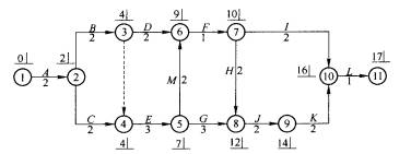 (2)计算增加新工作M后,施工机械的闲置时间:
