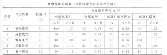 第47题 根据技术经济分析表,运用综合评价法选定最优的吊装方案。