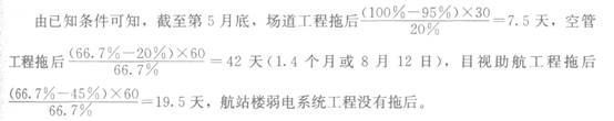 (3)如第6月以后(含第6月)实际月进度与计划月进度相等,计算预计总工期拖后的时间。
