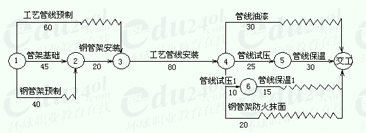 (2)当工程进行了5个月时,又将实际进度与网络计划进行比较发现,工艺管线安装拖后20天。