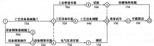 在施工过程中,由于建设单位要求变更设计图纸,致使设备钢架制作工作停工10天(其他工作持续时间不变),建设单位及时向施工单位发出通知,要求施工单位塔机按原计划进场,调整进度计划,保证该项目按原计划工期完工。
