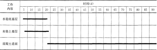 某机场建设工程正在进行,施工单位提交了一份场道工程的专项施工进度计划,其横道图见下表。
