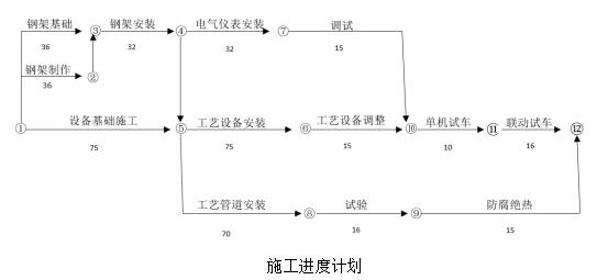 建设单位通过招标与施工单位签订了某工业项目的施工合同,主要工作内容包括设备基础、钢架基础、设备钢架制作安装、工艺设备、工艺管道、电气和仪表设备安装等。开工前施工单位按照合同约定向建设单位提交了施工进度计划(如图)。