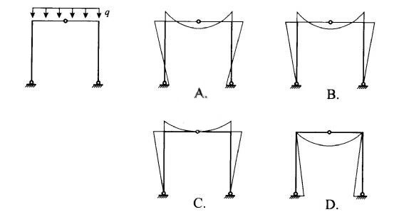 3、如图所示刚架梁上作用均布荷载时,弯矩图( )正确。