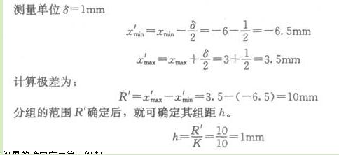 为了将数据的最大值和最小值都包含在直方图内,并防止数据落在组界上,测量单位(即测量精确度)为8时,将最小值减去半个测量单位,最大值加上半个测量单位。