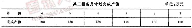 (4)工程竣工并交付竣工结算报告后30d内,支付工程总价款的95%,留5%作为工程保修金,8、9月份平均扣出,保修期(半年)满后全部结清。合同中有关工程工期的规定为:4月1日开工,9月20日竣工。工程款逾期支付,按每日3‰的利率计息。逾期竣工,按每日1000元罚款。根据经甲方代表批准的施工进度,各月计划完成产值(合同价)如下表所示。