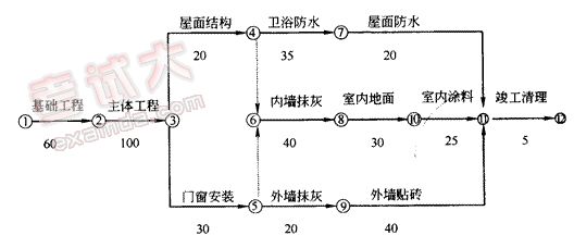 某工程项目为10层框架写字楼,业主通过招标与某建筑公司签订了土建工程施工合同。合同工期290d,合同中约定,由于施工单位原因造成工期延误,每延误一天罚款6000元;由于业主和其他原因造成工程延期,每延误一天补偿施工单位6000元;工期每提前一天,奖励施工单位8000元。施工单位按时提交了单位工程施工组织设计,并得到了监理工程师的批准。其中,工程施工的网络进度计划如下图所示。