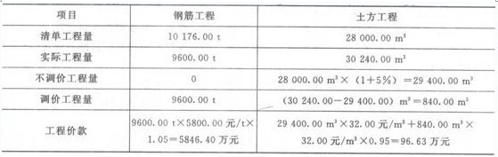 事件三:施工总承包单位项目部对清单工程量进行了复核。其中:钢筋实际工程量为9600.00吨,钢筋清单工程量为10176.00吨;土方实际工程量为30240.00m3,土方清单工程量为28000.00m3。施工总承包单位向建设单位提交了工程价款调整报告。