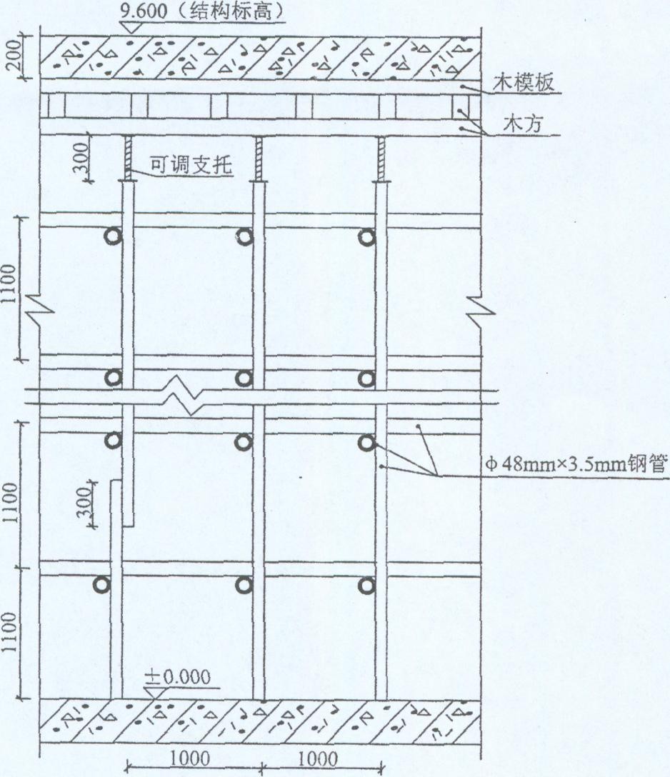 事件三:施工总承包单位根据《建筑施工模板安全技术规范》,编制了《大堂顶板模板工程施工方案》,并绘制了《模板及支架示意图》如下。监理工程师审查后要求重新绘制。