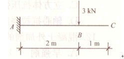 3、(0分) 有一悬臂梁受力及支承如下图所示,则固定端A的弯矩为( )kN·m。