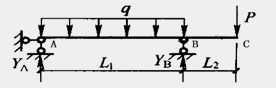 C.B点处的支座反力为q/2L1+P(L1+L2)/L1