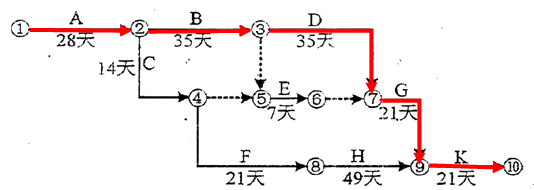 - 标准答案:1.本工程计划总工期=(28+35+35+21+21)天=140天,实际总工期=(140+10+7)天=157天。<br /> 2.施工总承包单位可否就事件一~事件三获得工期索赔的判定及其理由:<br /> 事件一可以获得工期索赔。<br /> 理由:A工作是因设计变更而停工,应由建设单位应承担的责任,且A工作属于关键工作。<br /> 事件二不可以获得工期索赔。<br /> 理由:B工作是因施工质量问题返工,应由施工总承包单位承担责任。<br /> 事件三不可以获得工期索赔。<br /> 理由:E工作虽然是因建设单位供料延期而推迟施工,但E工作不是关键工作,且推迟3天未超过其总时差。<br /> 3.施工单位可以向甲方提出工期索赔;因洪水属于不可抗力原因且该工作属于关键工作,所以工期可以顺延。施工单位不可以进行费用索赔,因为不可抗力造成的机械的损坏修理和重新购置费用应有施工单位承担。<br /> 4.计算截止到第110天的合计BCWP值:<br /> 第110天的合计BCWP值计算表<br /> <table border="1" cellpadding="0" cellspacing="0"> <tbody> <tr> <td style="width: 43px"> 工作代号</td> <td style="width: 156px"> <strong>计划</strong>完成工作预算成本BCWS(万元)</td> <td style="width: 120px"> 已完成工作量(%)</td> <td style="width: 132px"> <strong>实际</strong>发生成本<br /> ACWP(万元)</td> <td style="width: 117px"> <strong>挣得值</strong><br /> BCWP(万元)</td> </tr> <tr> <td style="width: 43px"> 1</td> <td style="width: 156px"> 540</td> <td style="width: 120px"> 100</td> <td style="width: 132px"> 580</td> <td style="width: 117px"> 540</td> </tr> <tr> <td style="width: 43px"> 2</td> <td style="width: 156px"> 820</td> <td style="width: 120px"> 70</td> <td style="width: 132px"> 600</td> <td style="width: 117px"> 574</td> </tr> <tr> <td style="width: 43px"> 3</td> <td style="width: 156px"> 1620</td> <td style="width: 120px"> 80</td> <td style="width: 132px"> 840</td> <td style="width: 117px"> 1296</td> </tr> <tr> <td style="width: 43px"> 4</td> <td style="width: 156px"> 490</td> <td style="width: 120px"> 100</td> <td style="width: 132px"> 490</td> <td style="width: 117px"> 490</td> </tr> <tr> <td style="width: 43px"> 5</td> <td style="width: 156px"> 240</td> <td style="width: 120px"> 0</td> <td style="width: 132px"> 0</td> <td style="width: 117px"> 0</td> </tr> <tr> <td style="width: 43px"> 合计</td> <td style="width: 156px"> 3220</td> <td style="width: 120px"> —</td> <td style="width: 132px"> 2510</td> <td style="width: 117px"> 2900</td> </tr> </tbody> </table> <br /> 截止到第110天的合计BCWP值为2900万元。<br /> 5.第110天的成本偏差CV= BCWP- ACWP=(2900-2510)万元=390万元。<br /> CV值结论分析:由于成本偏差为正,说明成本节约390万元。<br /> 6.第110天的进度偏差SV= BCWP-BCWS=(2900-3220)万元=-320万元。<br /> SV值结论分析:由于进度偏差为负,说明进度延误了320万元。<br />