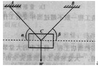 4. 一个质量为W的物体,通过两根绳索AC和BC悬吊(见下图)。下列四种情况中,绳索AC拉力最大的是( )。