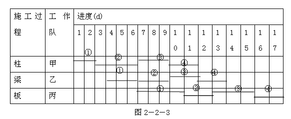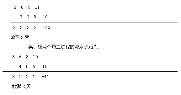 所以本案例:柱、梁两个施工过程的流水步距为:(大差法)