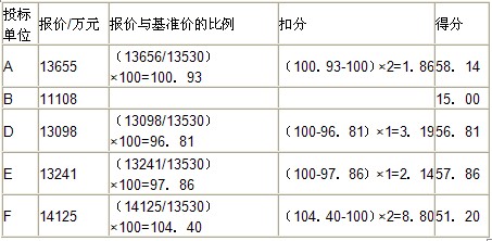 - 解析:1.(1)计算各投标单位施工方案的得分,见表80。
