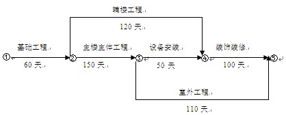 4、(0分) 某工程网络进度计划为下图所示,室外工程的总时差应为( )天。
