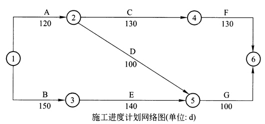 3.按照图示施工进度计划,写出该进度计划网络图的关键线路(用节点表示)和计算工期,并说明按此计划该工程是否能够按照合同工期要求完工。