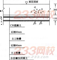 经过招投标,A施工单位承担了港区500万m3的吹填及10万m2的道路及堆场的施工任务。道路及堆场的典型设计断面如下图所示。