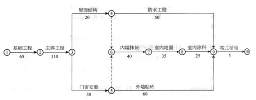 背景资料:某12层商务酒店工程,业主通过公开招标与某建筑公司签订了土建工程施工合同,合同工期310天。合同中约定,工期每提前一天,奖励施工单位8000元。施工单位按时提交了单位工程施工组织设计,并得到了监理工程师的批准。其中,工程施工的网络进度如图所示。