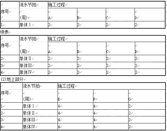 3.如果地上、地下均采用最适合的流水施工组织方式,现在要求地上部分与地下部分最大限度地搭接,各施工过程间均没有间歇时间,计算最大限度搭接时间,并给出分析过程。