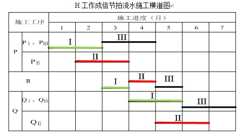 H工作成倍节拍流水施工横道图如下图所示(3分)。